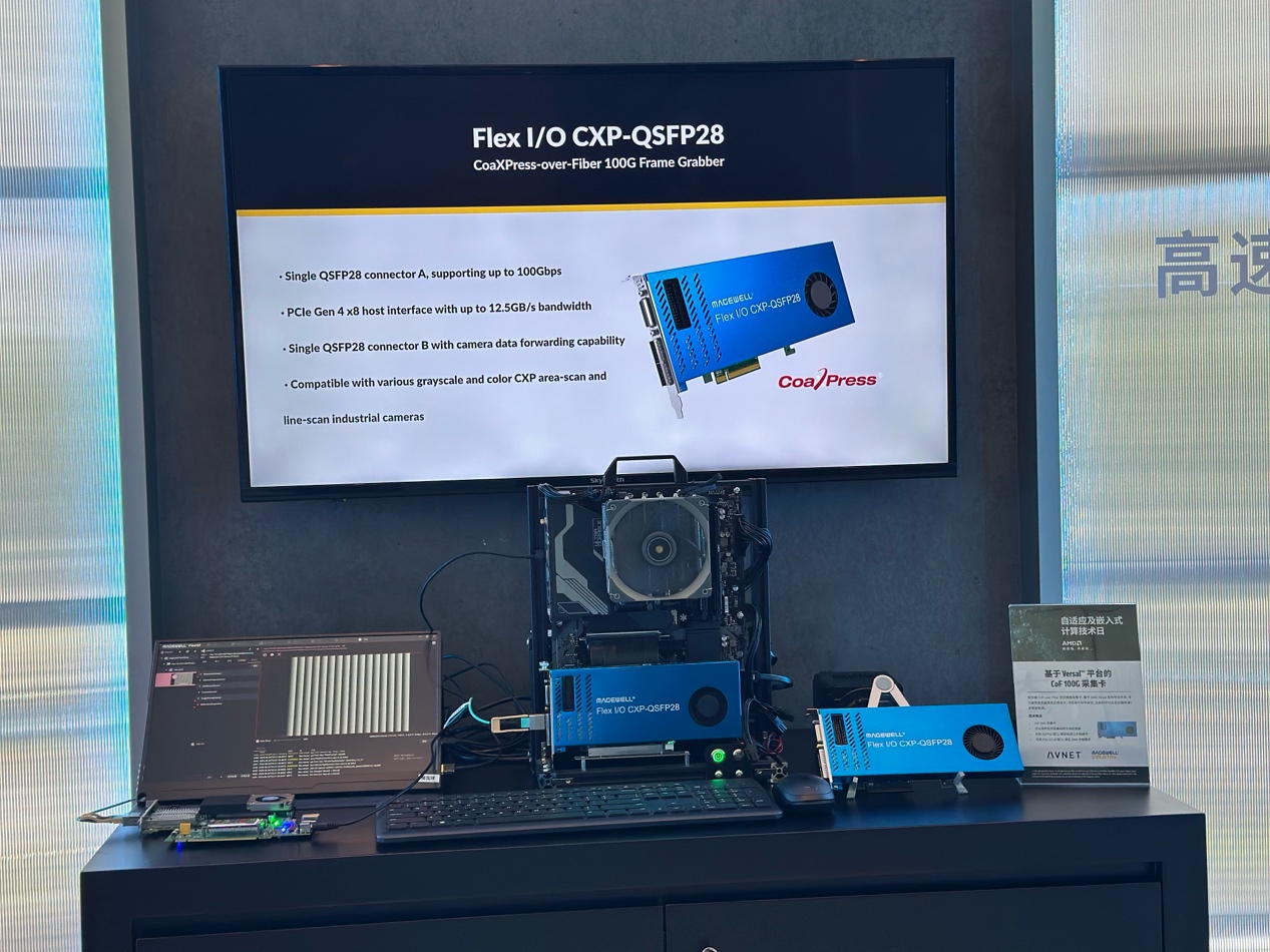 在备受关注的“高速信号”专区,美乐威重点展示了其基于 AMD Versal 系列平台开发的重磅新品—— CoF 100G 图像采集卡(型号名: Flex I/O CXP-QSFP28 )。 该产品专为高带宽机器视觉应用设计,具备显著技术优势: